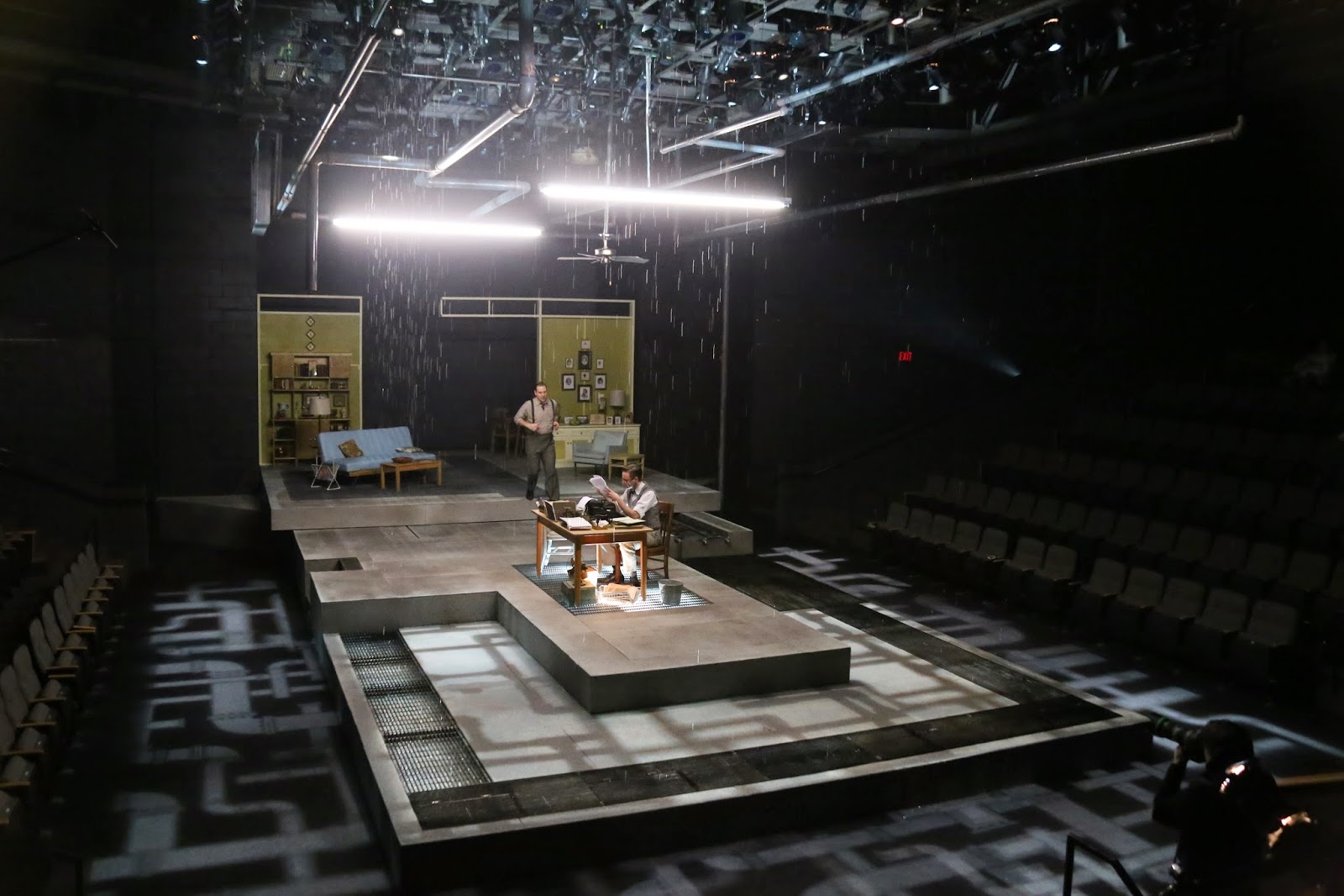 The water feature surrounding the Stockmanns’ home proves to be a stand-out piece of the production. Because water is so integral to the plot, McKay felt it was a necessity to the scenic design. And the moat-like segment of the set is not just there for looks, it serves an important purpose. When the action shifts away from the Stockmanns’ home to the office of the town newspaper water begins to fall from piping in the ceiling, changing the mood of the play from happy-go-lucky to ominous and eerie, causing the audience to question what’s to come.