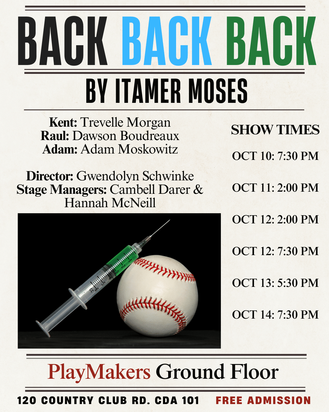 Back, Back, Back by Itamer Moses, directed by Gwendolyn Schwinke