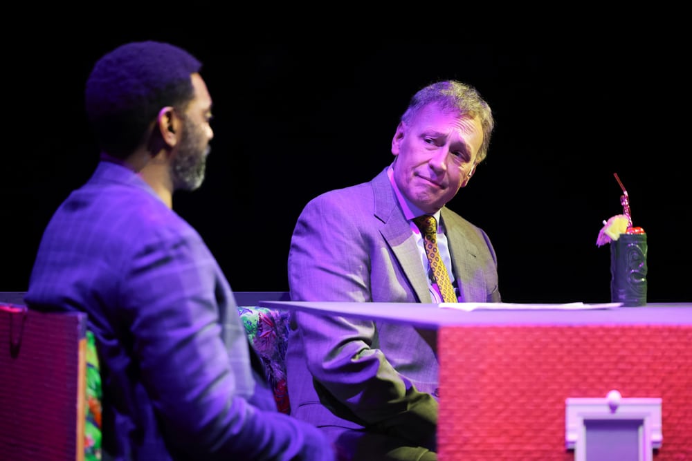 Within the world of Primary Trust, there is a bell-ding sound cue that plays throughout the play, often during idea changes, character shifts, or key moments. It shows up as a single bell ding for each shift, not an intensely loud or repetitive sound.