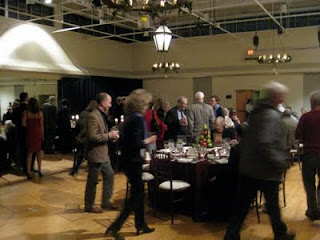 The patrons weren’t the only ones in need of a meal on Saturday. The cast, crew and staff didn’t have time to leave the building either. Shane & Jeff arranged for two rooms to be set-up – one for a cast and crew dinner and one for staff hospitality. These two rooms were run by Information Systems Specialist Carli Webb and myself. Carli, along with cast member (and Director of Education & Outreach) Jeff Meanza, spent Friday morning stuffing 35 chicken breasts for the cast dinner. She and I spent most of the day Saturday running between the kitchen (cooking the rest of the cast dinner) and the class rooms where these events were taking place. All around us were students and admin staffers setting-up tables, moving chairs, arranging flowers, helping caterers, plating food trays – absolutely constant activity.